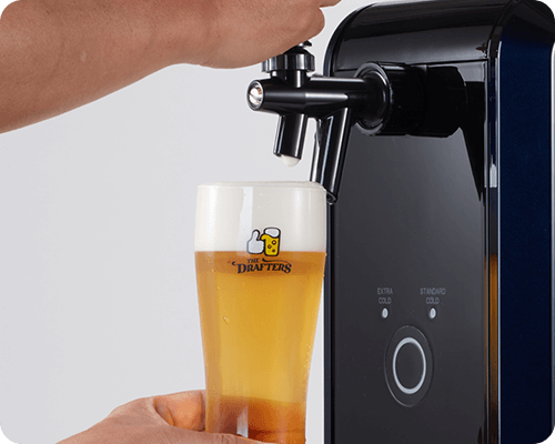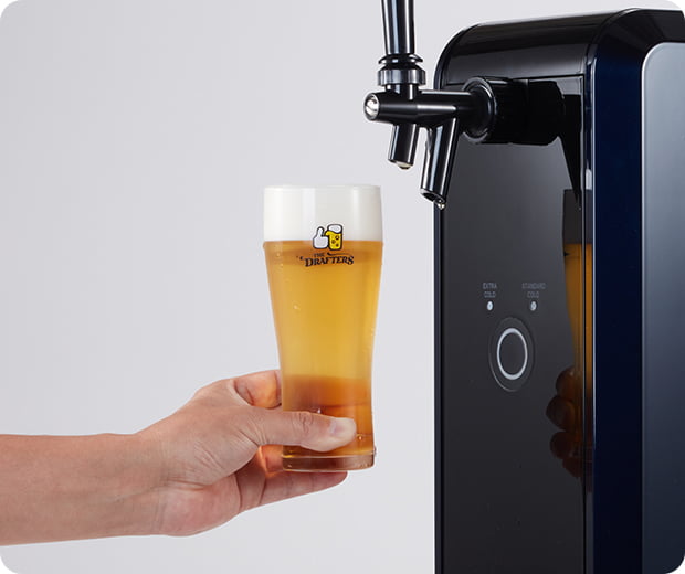 レバーを全開にし、ビールがグラスの内側を伝わるように泡を立てず静かに注ぎます。