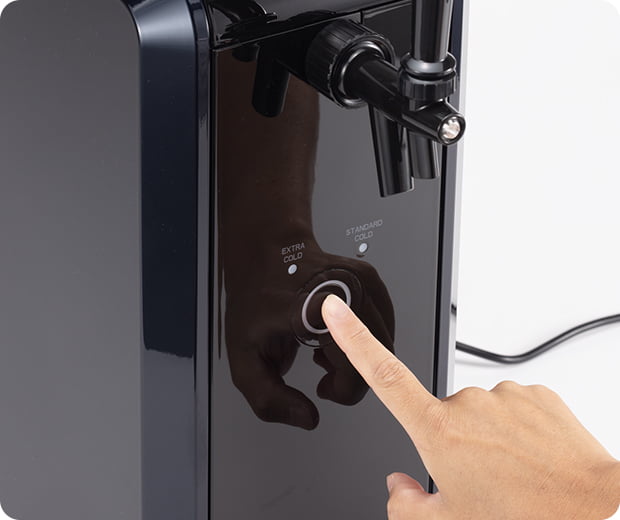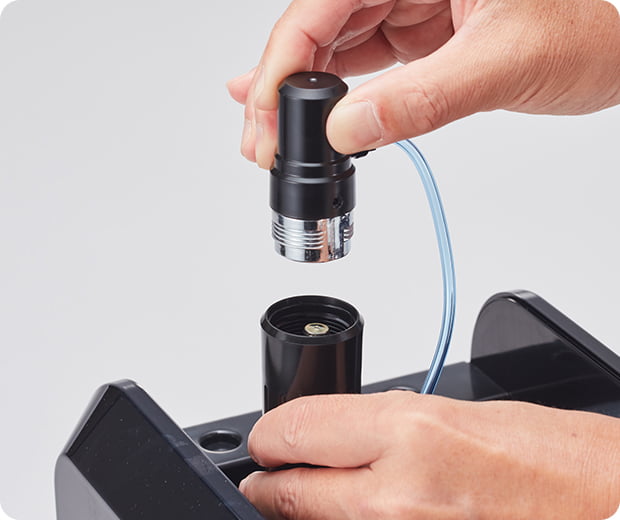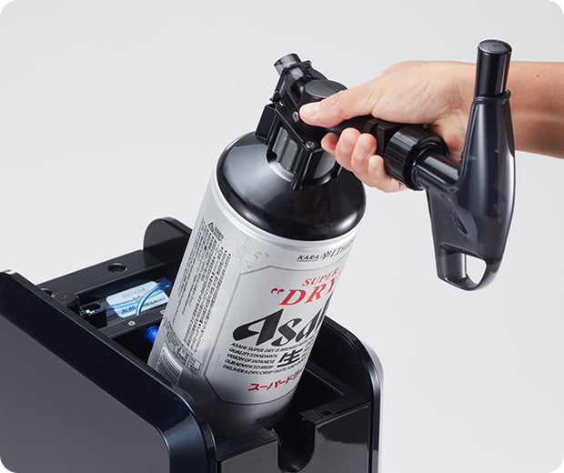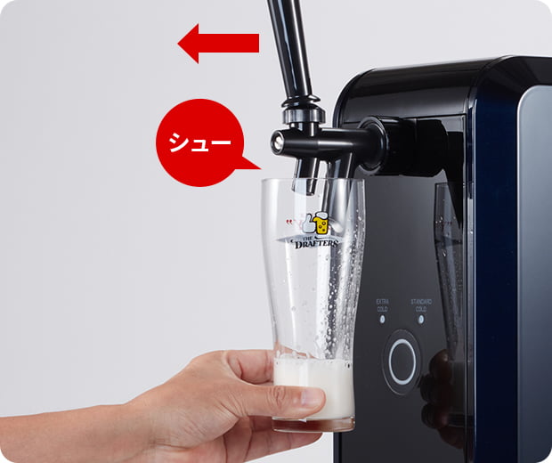 ②レバーを手前に倒して泡やガスを空のグラスなどに出し切る(目安:約10秒間)