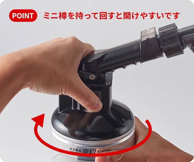 ここでガスを出し切っておくとミニ樽が外れやすくなります。 -