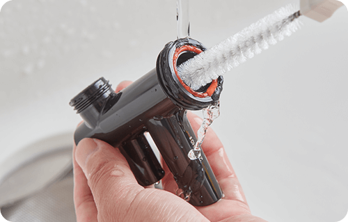 ②水通し洗浄後に、分解して各パーツをブラシ洗浄する
