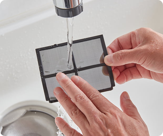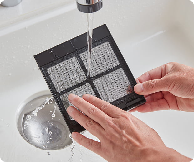 フィルターは月1回以上、取り外して流水洗いしてください。