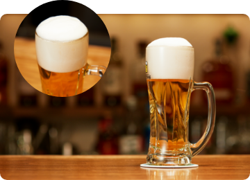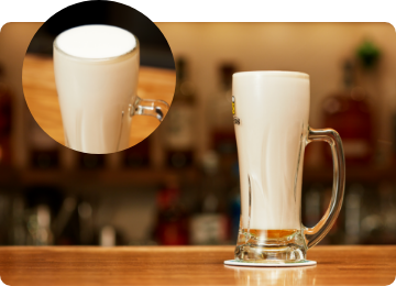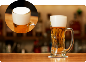 ビールを飲むとき、最初に唇に触れるのは“泡”。泡の質感でビールの印象は大きく変わります。その後、口の中にビールが流れ込んでくることでシュワッとした“炭酸”の爽快感を得ることができます。私がビールを注ぐ時に特に意識しているのは、この“泡”の質感と液体中の“炭酸”の含有量です。ビールを適度に泡立てることによって、これらをコントロールし、ビールの味わいに変化をつける事ができます。炭酸の切れ味と辛口の味わいを特徴とするスーパードライでは、キメ細かな泡の下にしっかりとした炭酸を閉じ込める“シャープ注ぎ”がオススメ!最初の一杯目はぜひ爽快な喉越しを楽しんでください。