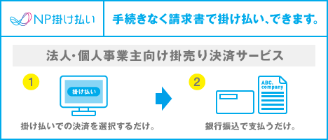 NP掛け払いサービスの詳細法人/個人事業主を対象とした掛け払いサービスです。(月末締め翌月末請求書払い)