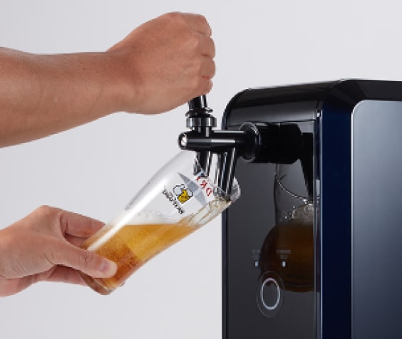 ビールの温度が低いほど泡は細かくなり、キレのあるノドごしが楽しめるため、このステップはとても大切。エクストラコールド・モードの場合は、専用タンブラーを冷やしておきましょう。