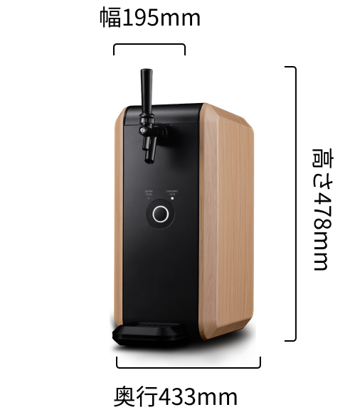 ※「本格泡リッチサーバー」より奥行が38㎜長くなります。必要なスペース: