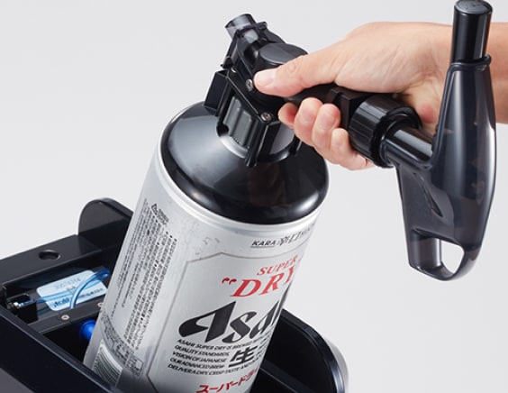 アサヒスーパードライ2L缶はお近くの量販店や酒店でもご購入いただけます。その他必要なミニガスは本サイトで購入できます。